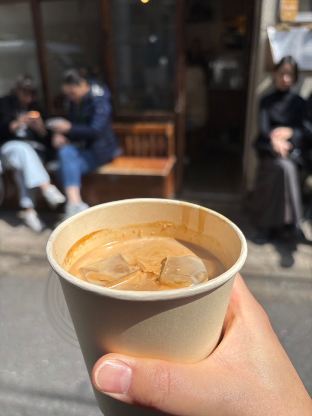 인스타에서 소개한 건 아이스라떼였다. 같이 올라온 이미지에서는 쫀득하고 진하고 고소한 라떼가 상상되는 그런 느낌이었다.실제로 마셔본 라떼는 내가 인생에서 마셔봤던 라떼 중에 손에 꼽힐 정도로 최고. 인스타에서 붙인 수식어인 '도쿄 최고의 커피'가 찰떡이라고 할 만큼 맛있었다.