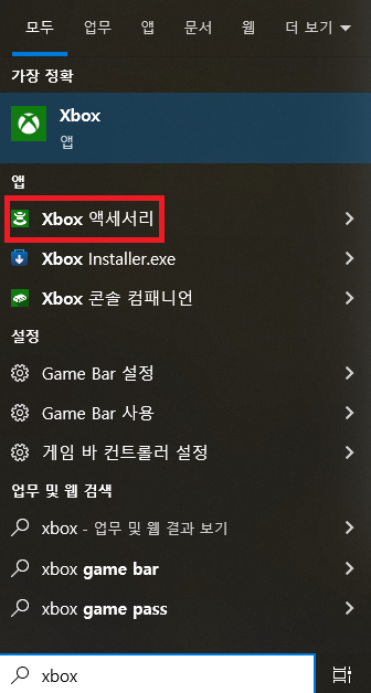 제일 먼저 찾은 방법은 Xbox 패드 업데이트였다. 우선 윈도 검색에서 Xbox 를 치면 'Xbox 액세서리'가 나오는데 클릭. 안 뜬다면, 검색창에 Microsoft Store로 들어가서 'Xbox 액세서리' 검색 후 설치해 준다.