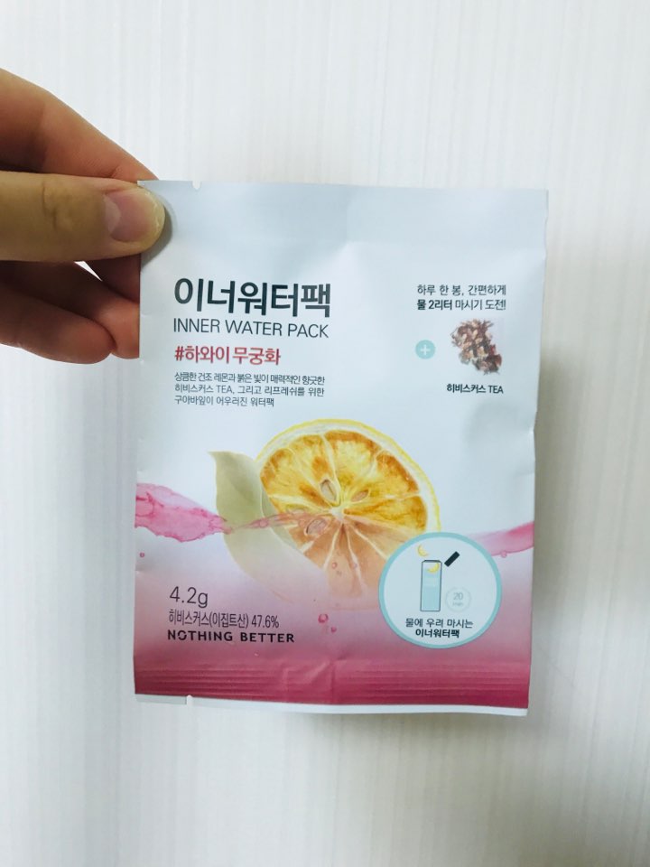 올리브영에서 우연히 할인하는 상품으로 '이너워터팩'을 발견했는데, 건조과일과 차를 함께 마실 수 있는 팩이었다. 그냥 물을 마시기 힘들어하는 나에게 꽤 괜찮을 것 같았다.