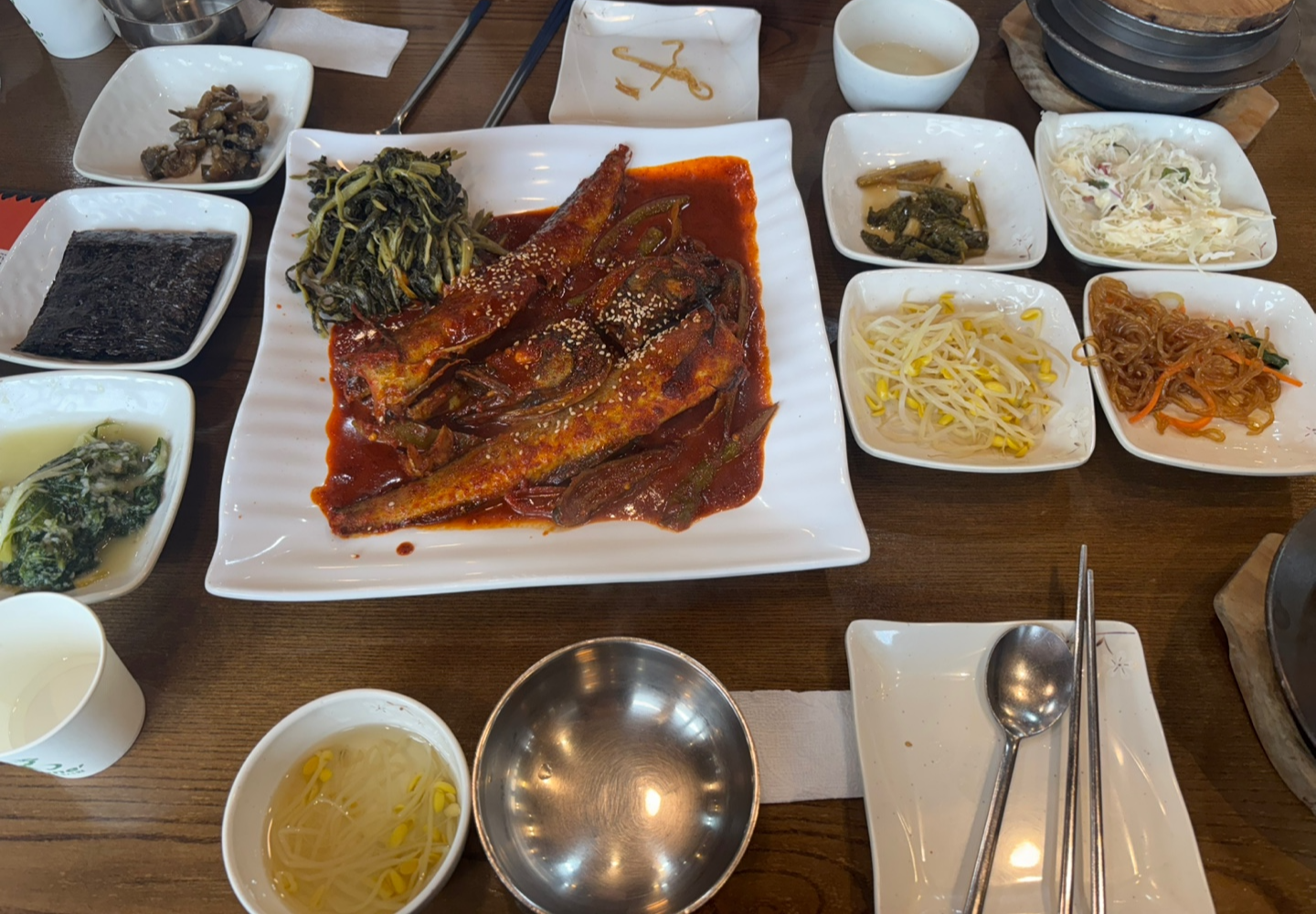 전반적으로 정말 좋은 맛이었고, 메인 메뉴에 시래기 추가해서 맛을 두 배로 느낄 수 있는 점도 좋았다. 솥밥 역시 매콤함 뒤에 누룽지로 속을 가라앉힐 수 있는 것도 좋았고, 밑반찬의 퀄리티와 무한리필 까지도 좋았다. 음식은 약간 늦게 나오는 느낌이 있지만, 직원분들의 친절함과 주차의 편리함을 생각하면 내 맛집 리스트에 넣고 종종 방문하고 싶다. 짝꿍은 정말 오랜만에 밥 다운 밥을 맛있게 먹는다고 칭했을 정도! 생선을 잘 안 먹는데도 여기는 종종 생각날 것 같다.