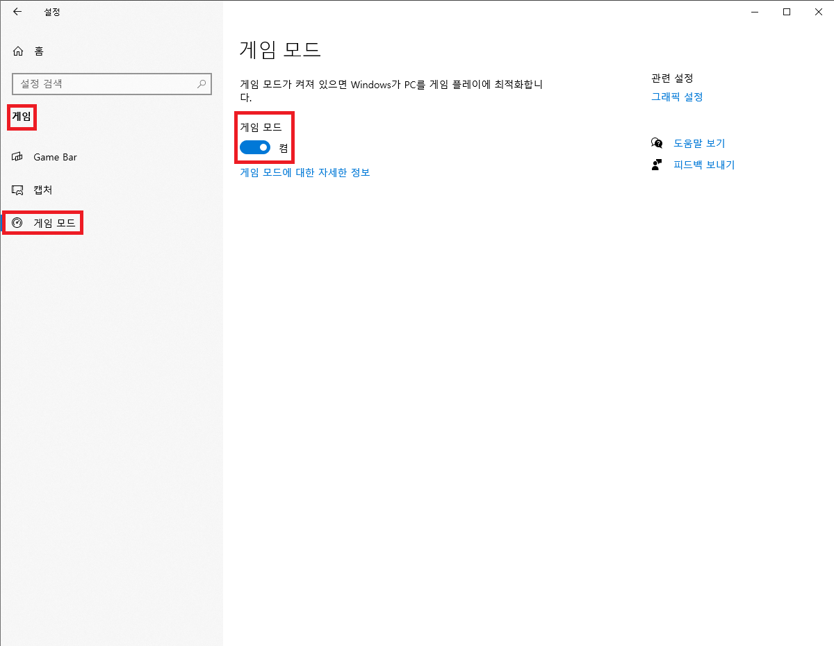 - 게임 모드 설정 : 설정(Windows키 +I) → 게임 → 게임모드 활성화 후 재시도