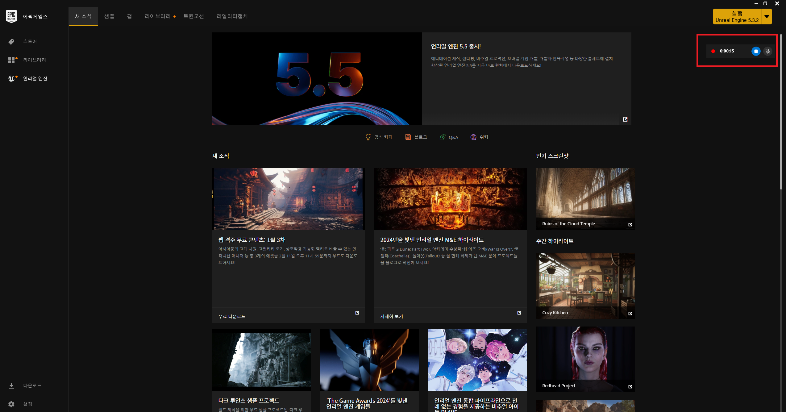 → Alt + Enter로 창 모드로 전환 후 녹화