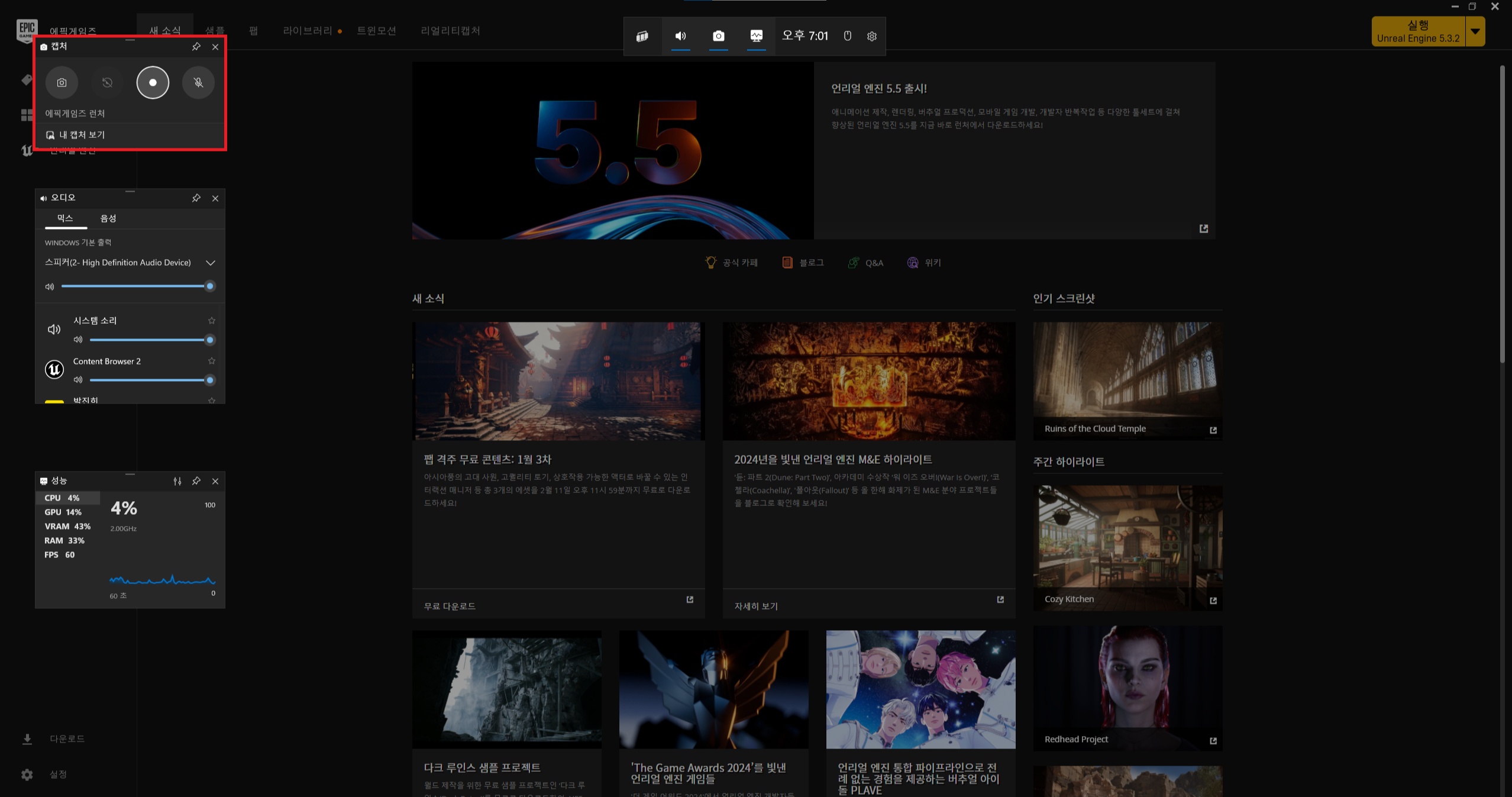 → OBS Studio (스트리밍 방송용 녹화 프로그램) 등의 외부 소프트웨어 필요 - 일부 전체 화면 게임에서 작동하지 않을 수 있음