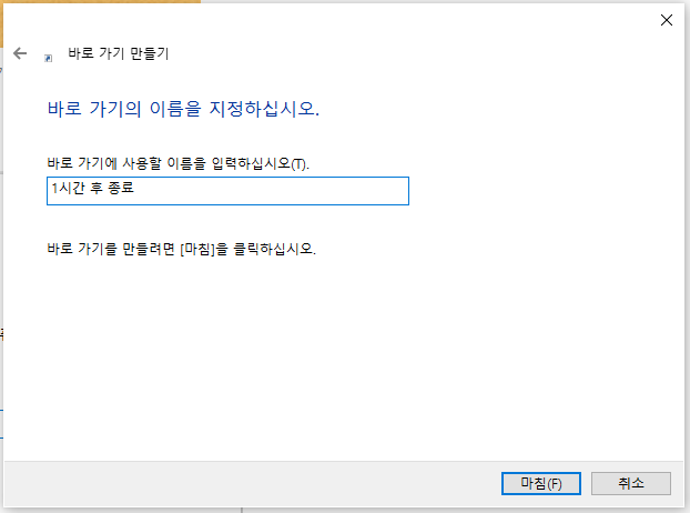 만약 예약 종료를 많이 사용할 것 같다면, 매번 명령어를 입력하지 않고 바로가기로 만들어 더블클릭만으로 종료 예약을 할 수 있다.