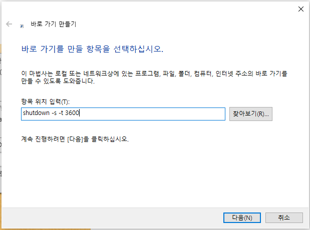 자주 사용하는 예약 종료를 바로가기로 만들기